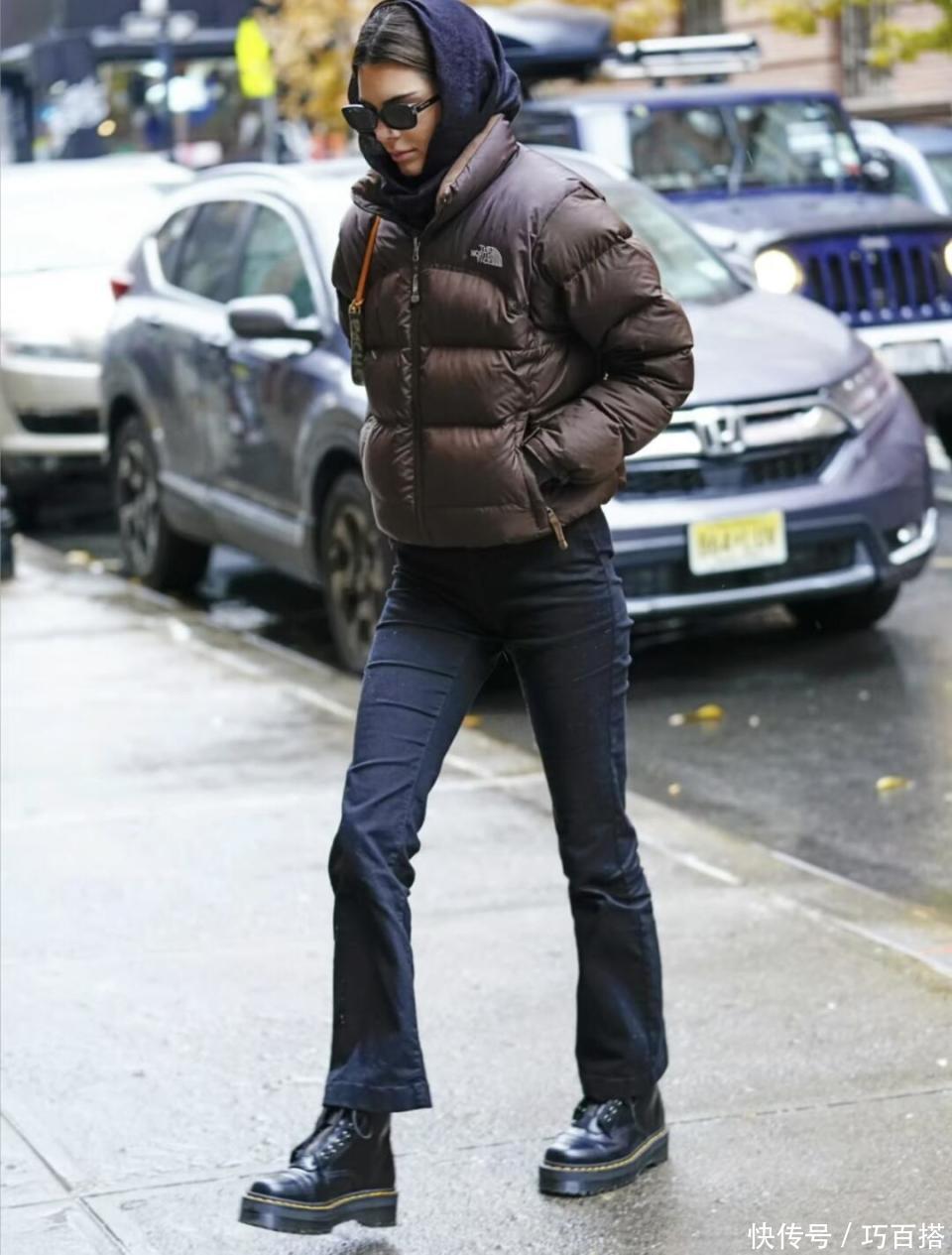 但有一点是,如果你有重要活动参加,选择连帽卫衣搭配羽绒服会略显幼稚,适时换成针织毛衣或者紧身打底衫效果最佳。